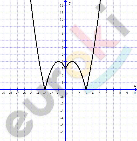 Постройте график функции: y=|-x^2+2|x|+3|. При каких значениях x значения функции y=-x^2+2x+3 положительны?