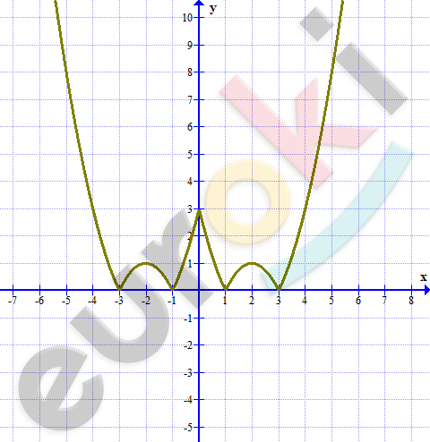 \[y = \left| x^{2} - 4 \right|x| + 3| =\]