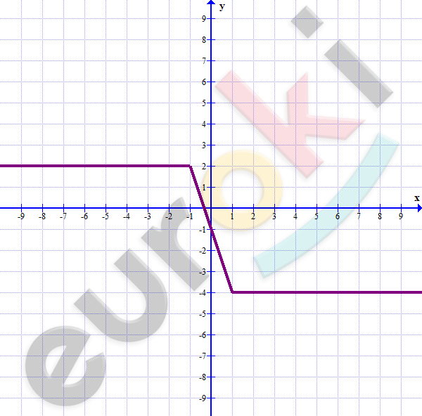 \[y = \left\{ \begin{matrix} 2,\ \ \ \ \ \ \ \ \ \ \ \ \ \ \ \ \ \ \ \ \ \ \ \ \ \ \ \ \ \ \ x \leq - 1 \\ - 3x - 1,\ \ - 1 < x < 1 \\ - 4,\ \ \ \ \ \ \ \ \ \ \ \ \ \ \ \ \ \ \ \ \ \ \ \ \ \ \ \ \ \ \ \ x \geq 1 \\ \end{matrix} \right.\ \]