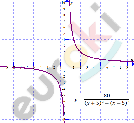 \[y = \frac{80}{(x + 5)^{2} - (x - 5)^{2}} =\]