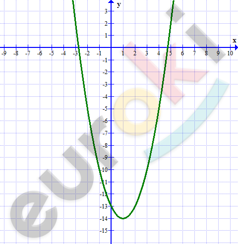 Контрольные задания > Постройте график функции: y=(x-1)^2-14. Найдите промежутки возрастания (убывания) функции. Укажите значение x, при котором функция достигает наибольшего (наименьшего) значения.