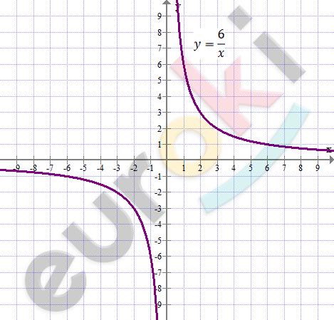 Контрольные задания > Постройте график функции y = 6/x. Какова область определения функции? При каких значениях х функция принимает отрицательные значения?