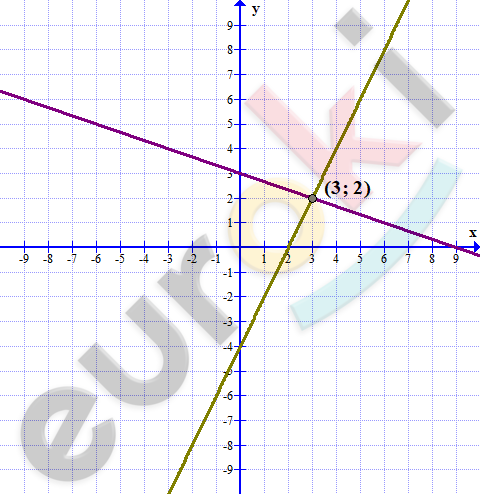 Постройте в одной системе координат графики функций и укажите координаты точки их пересечения: y=-1/3x+3 и y=2x-4.