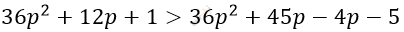 \[(6p + 1)^{2} > (9p - 1)(4p + 5)\]