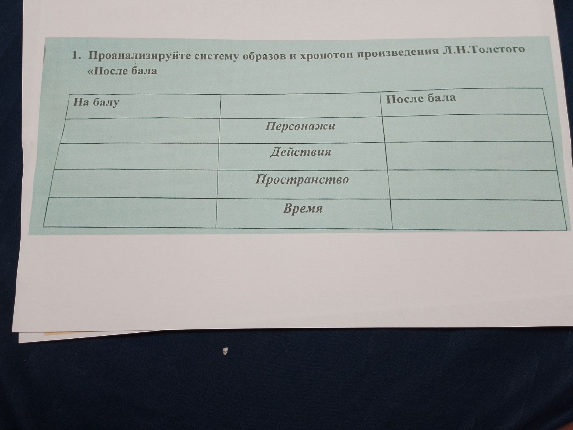 Для анализа системы образов и хронотопа произведения Л.Н. Толстого «После бала», необходимо заполнить таблицу, сравнивая элементы «На балу» и «После бала».
