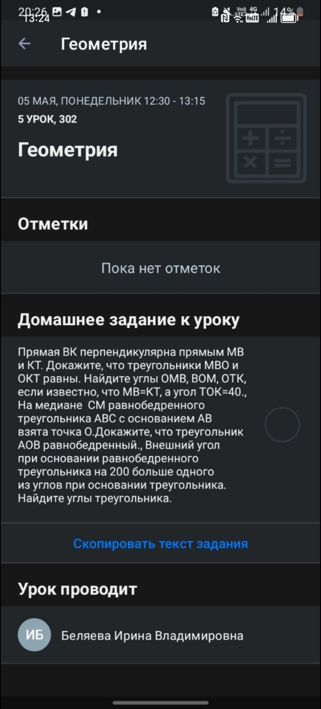 После доказательства равенства треугольников MBO и OKT, соответствующие углы будут равны. Например, если ∠MBO = ∠OKT, то можно найти их значения, используя информацию об углах в треугольниках и четырехугольниках, образованных данными линиями.