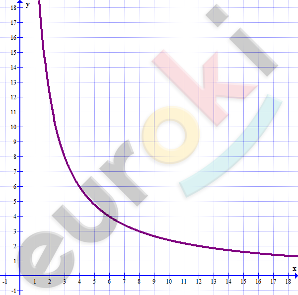 Контрольные задания > Прямоугольник со сторонами m см и n см имеет площадь, равную 24 см². Задайте формулой зависимость n от m и постройте график этой зависимости.