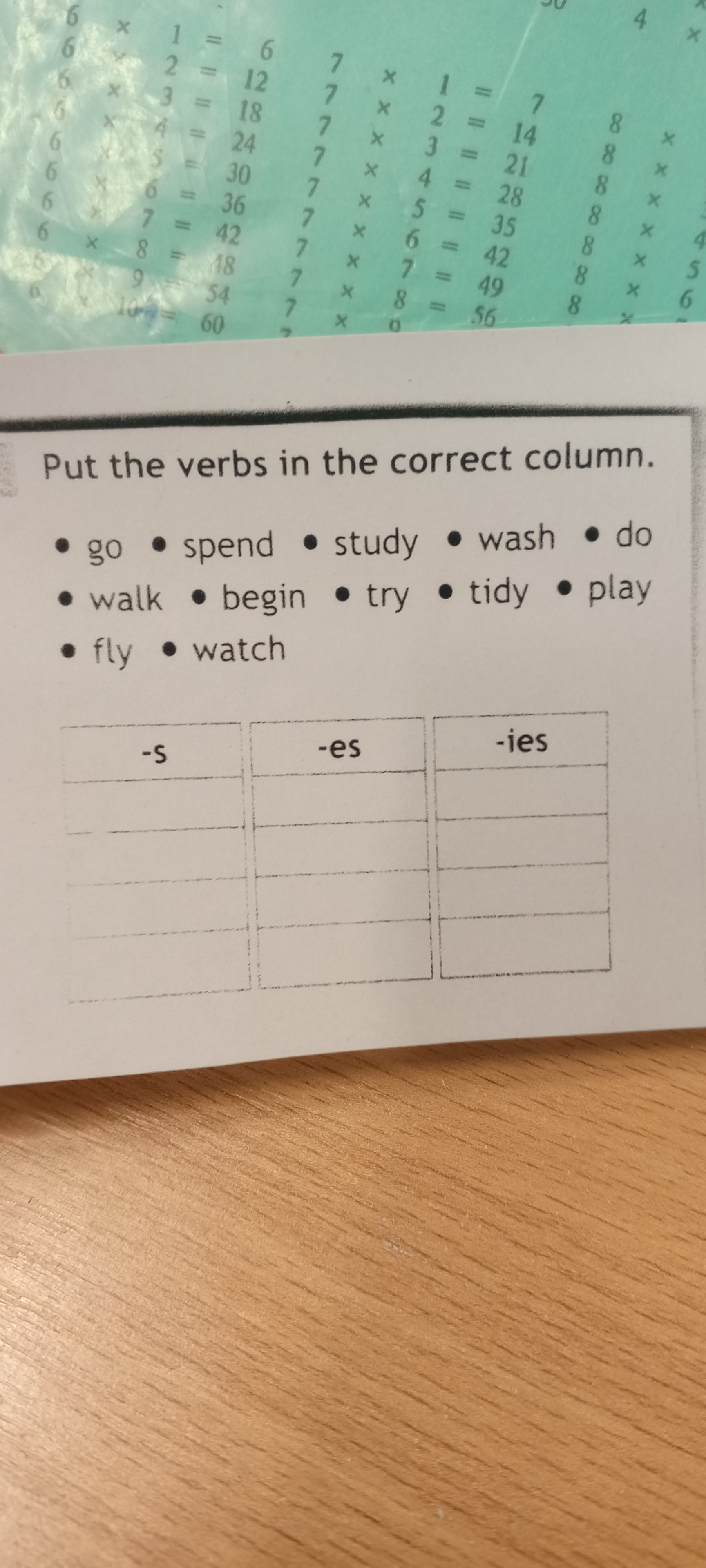 Put the verbs in the correct column.