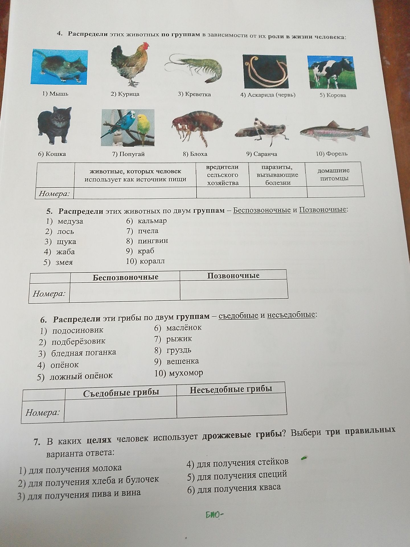 Разделим предложенных животных на группы: беспозвоночные и позвоночные.