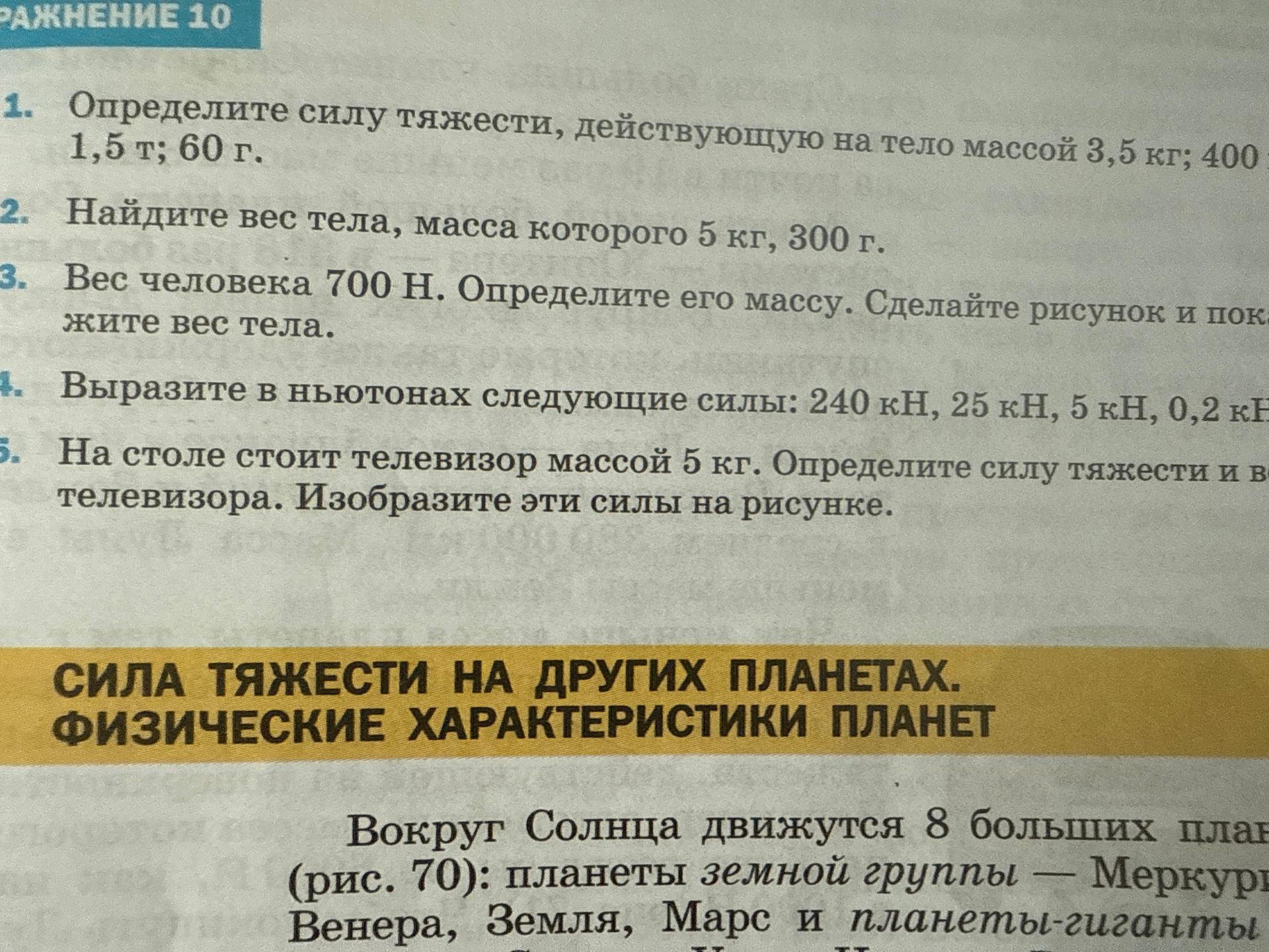 1. Определите силу тяжести, действующую на тело массой 3,5 кг; 400 г; 1,5 т; 60 г.