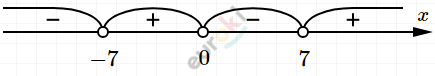 \[Ответ:\ \ x \in ( - 7;0) \cup (7;\ + \infty).\]