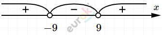 \[Ответ:\ \ \ x\ \in ( - \infty;\ - 9) \cup (9;\ + \infty).\]