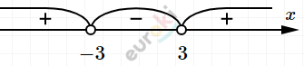 \[Ответ:x \in ( - 3;\ 3).\]