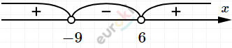 \[Ответ:x \in ( - \infty; - 9) \cup (6; + \infty).\]