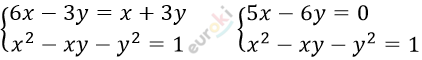 \[\left\{ \begin{matrix} 4x - 2y = x + 3y \\ x^{2} - xy - y^{2} = 1 \\ \end{matrix}\text{\ \ \ \ } \right.\ \text{\ \ \ }\]