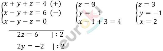Решите систему уравнений: x+y+z=4; x-y+z=6; x-y-z=0.