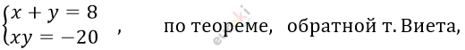 \[\left\{ \begin{matrix} x = - 2 \\ y = 10\ \\ \end{matrix}\ \ \ \ \ \ \ или\ \ \right.\ \text{\ \ \ \ \ \ }\left\{ \begin{matrix} x = 10 \\ y = - 2 \\ \end{matrix} \right.\ \]