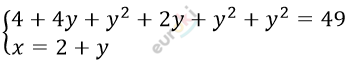 \[\left\{ \begin{matrix} (2 + y)^{2} + y(2 + y) + y^{2} = 49 \\ x = 2 + y\ \ \ \ \ \ \ \ \ \ \ \ \ \ \ \ \ \ \ \ \ \ \ \ \ \ \ \ \ \ \ \ \ \ \ \ \ \ \ \ \\ \end{matrix}\text{\ \ \ \ } \right.\ \]