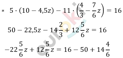 \[\left\{ \begin{matrix} x = 10 - 4,5z\ \ \ \ \\ y = \frac{4}{3} - \frac{7}{6}\text{z\ \ \ \ \ \ \ \ \ } \\ 5x - 11y = 16^{*} \\ \end{matrix} \right.\ \]
