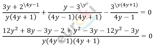 \[\frac{3y + 2}{4y^{2} + y} + \frac{y - 3}{16y^{2} - 1} = \frac{3}{4y - 1}\]