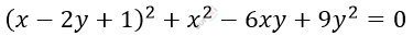 \[\left\{ \begin{matrix} (x - 3y)^{2} = 0\ \ \\ x - 2y + 1 = 0 \\ \end{matrix} \right.\ \text{\ \ \ \ \ \ }\]