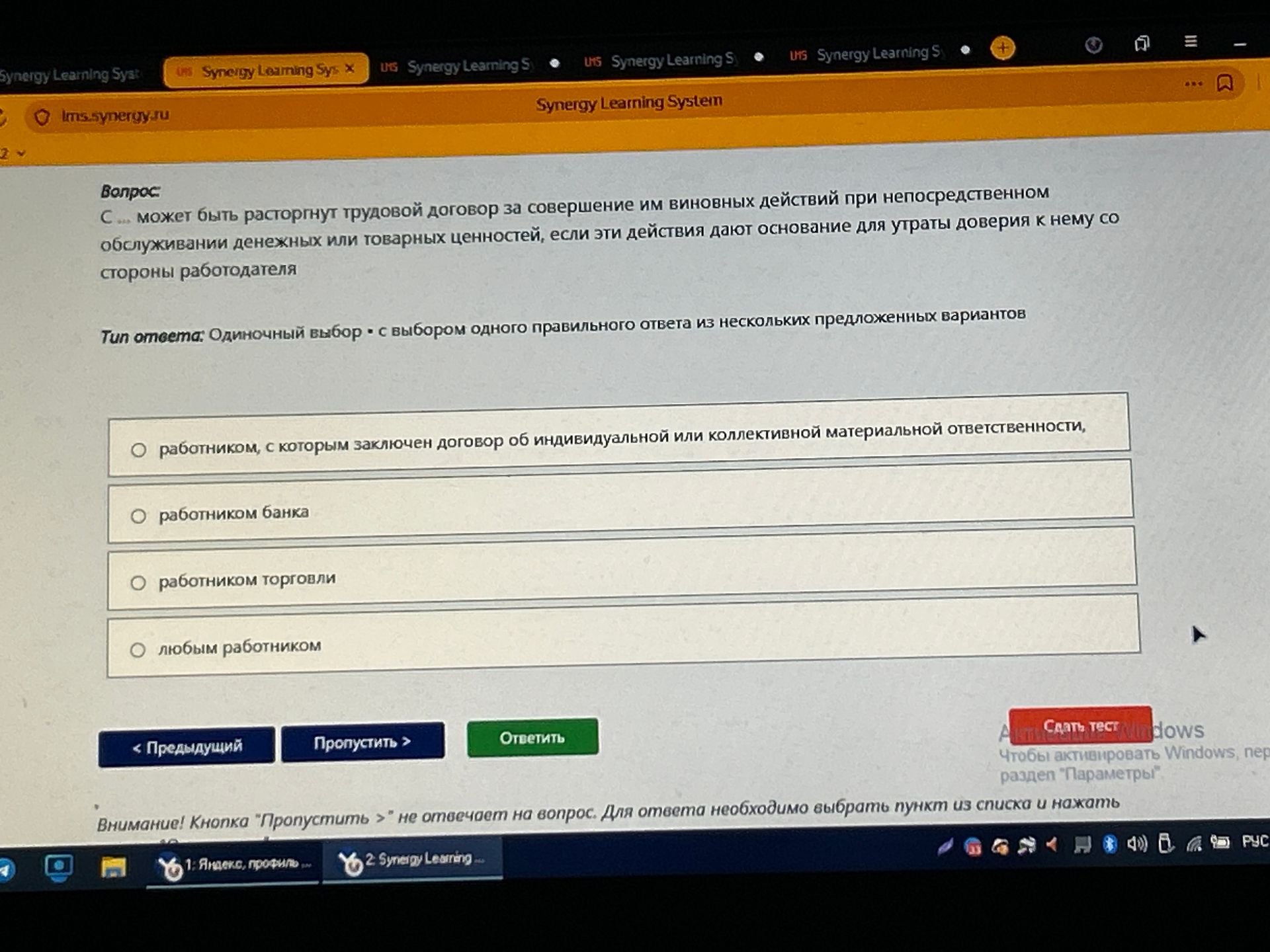 Ответ: работником, с которым заключен договор об индивидуальной или коллективной материальной ответственности,