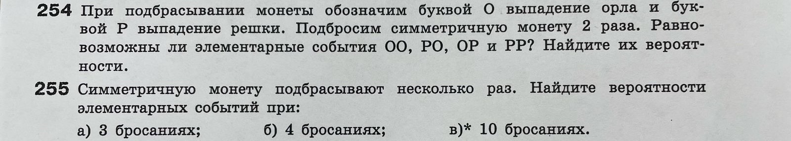 Вероятность выпадения орла или решки при каждом броске симметричной монеты равна $$\frac{1}{2}$$.