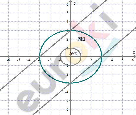 \[\left\{ \begin{matrix} x^{2} + y^{2} = a^{2} \\ |y - x| = 3\ \ \ \\ \end{matrix}\text{\ \ \ \ \ \ }(0;0),\ \ \ R = a \right.\ \]