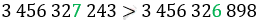 Сравните числа: 3 456 327 243 и 3 456 326 898.