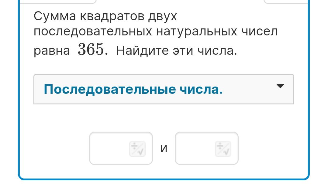Сумма квадратов этих чисел равна 365, составим уравнение: