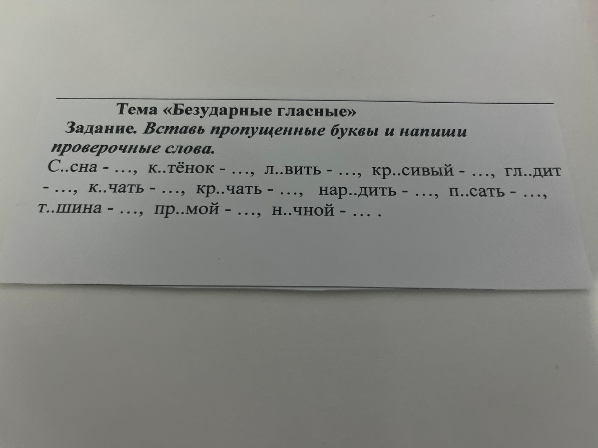 С..сна - ...., к..тёнок - ...., л..вить - ...., кр..сивый - ...., гл..дит