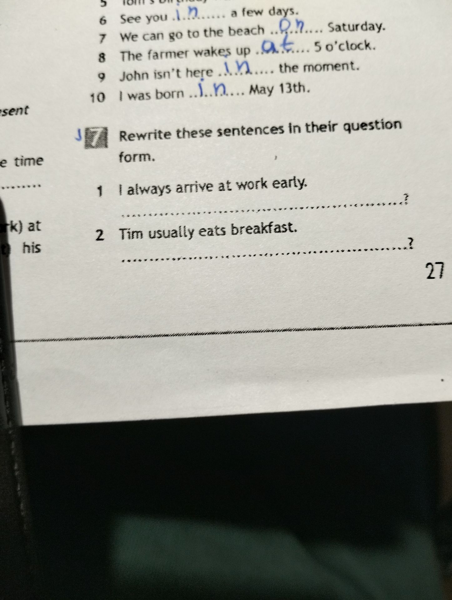 The farmer wakes up at 5 o'clock.