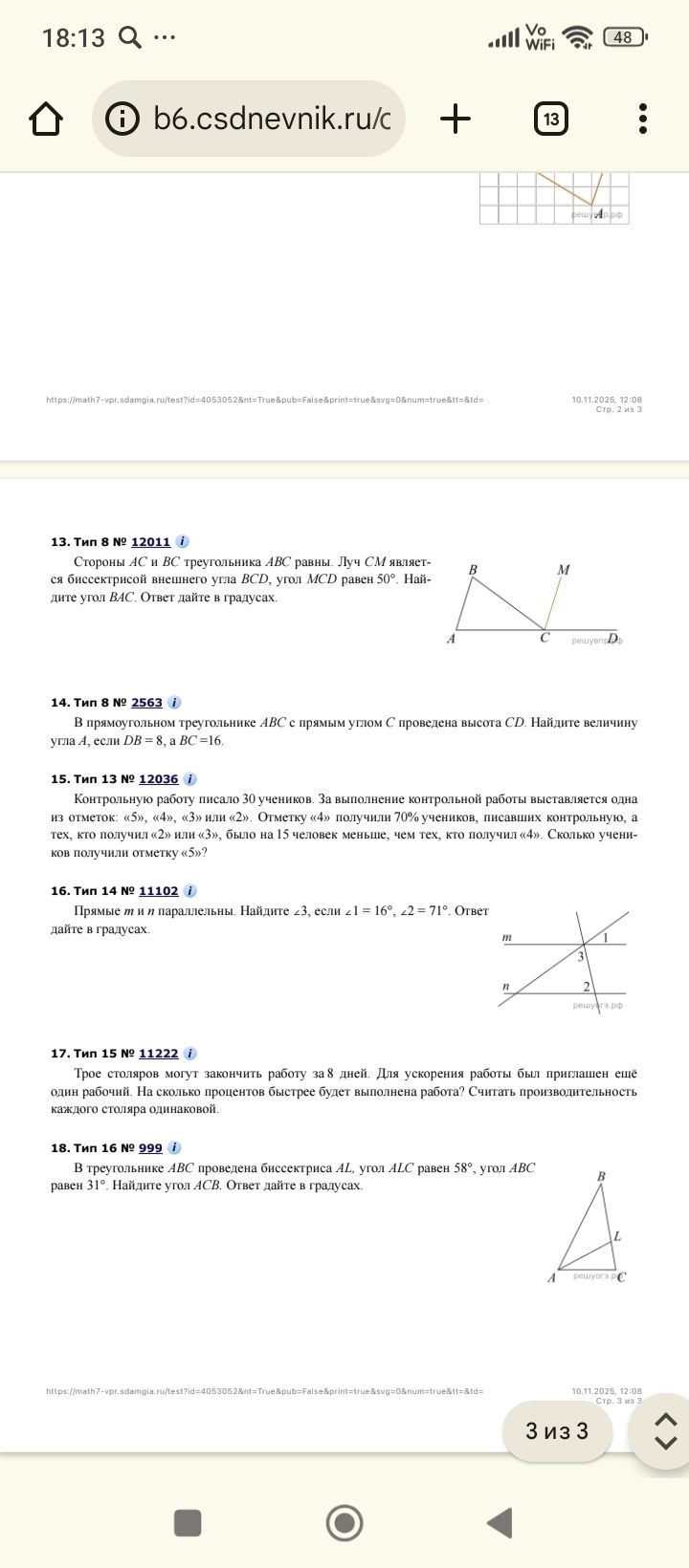 $$\cos B = \frac{DB}{BC} = \frac{8}{16} = \frac{1}{2}$$3. \(\cos B = \frac{1}{2}\), то \(\angle B = 60^\circ\).