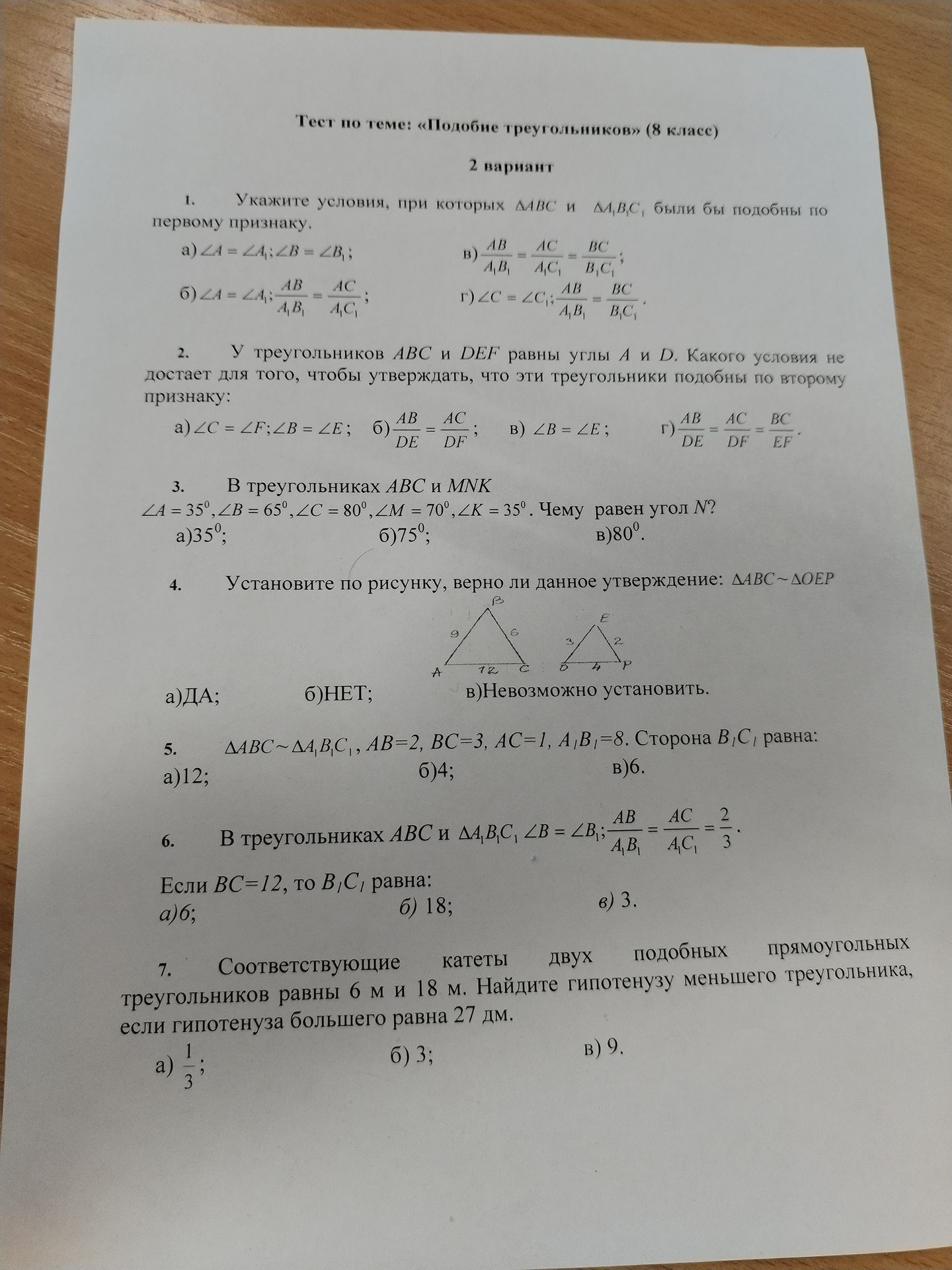Условие, которое не хватает, чтобы утверждать, что треугольники подобны по второму признаку: