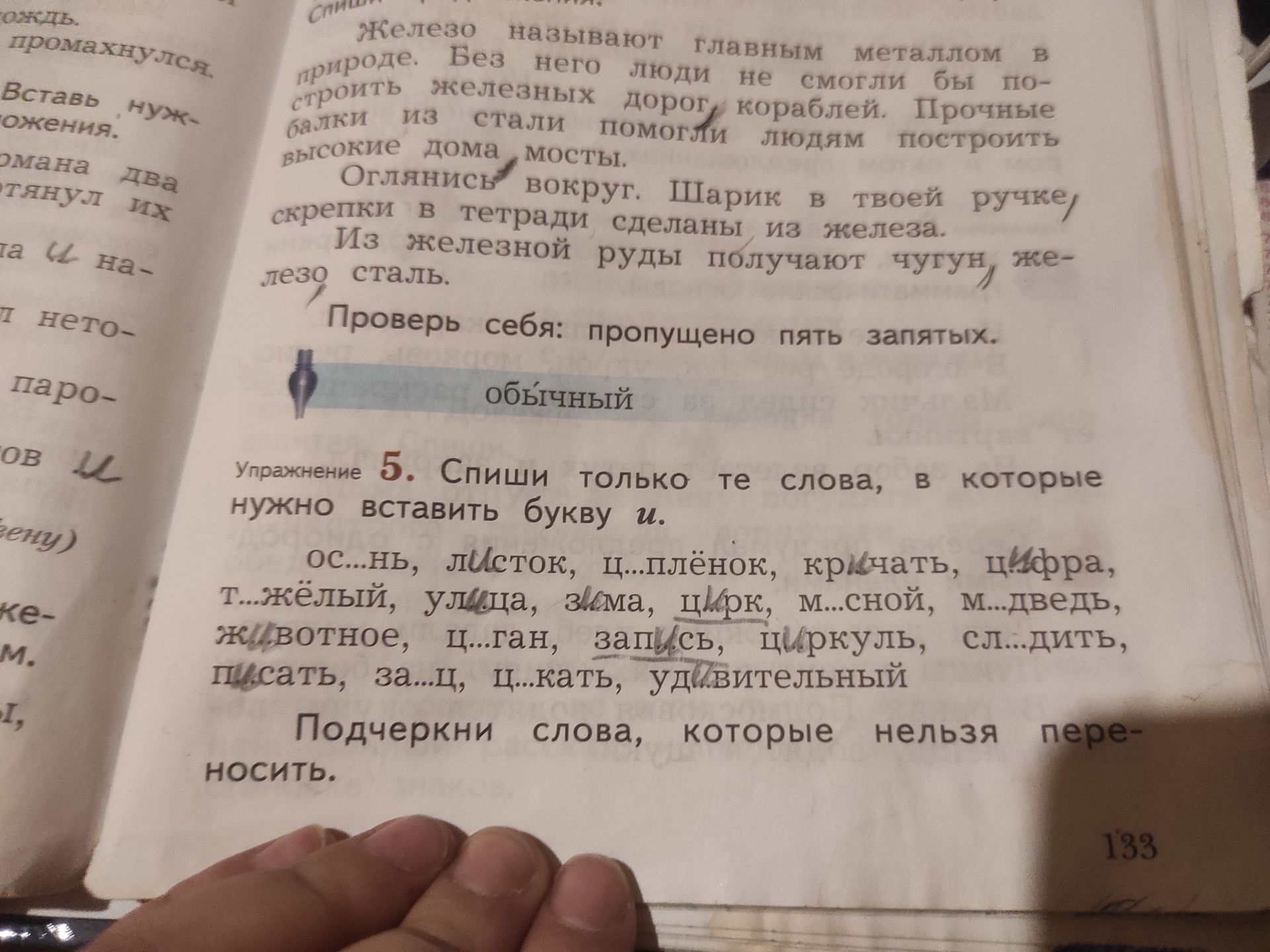 Упражнение 5. Спиши только те слова, в которые нужно вставить букву и.
