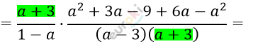 \[= \frac{9a - 9}{(1 - a)(a - 3)} =\]