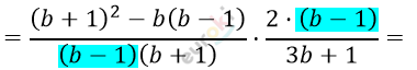 \[= \frac{b^{2} + 2b + 1 - b^{2} + b}{b + 1} \cdot \frac{2}{3b + 1} =\]
