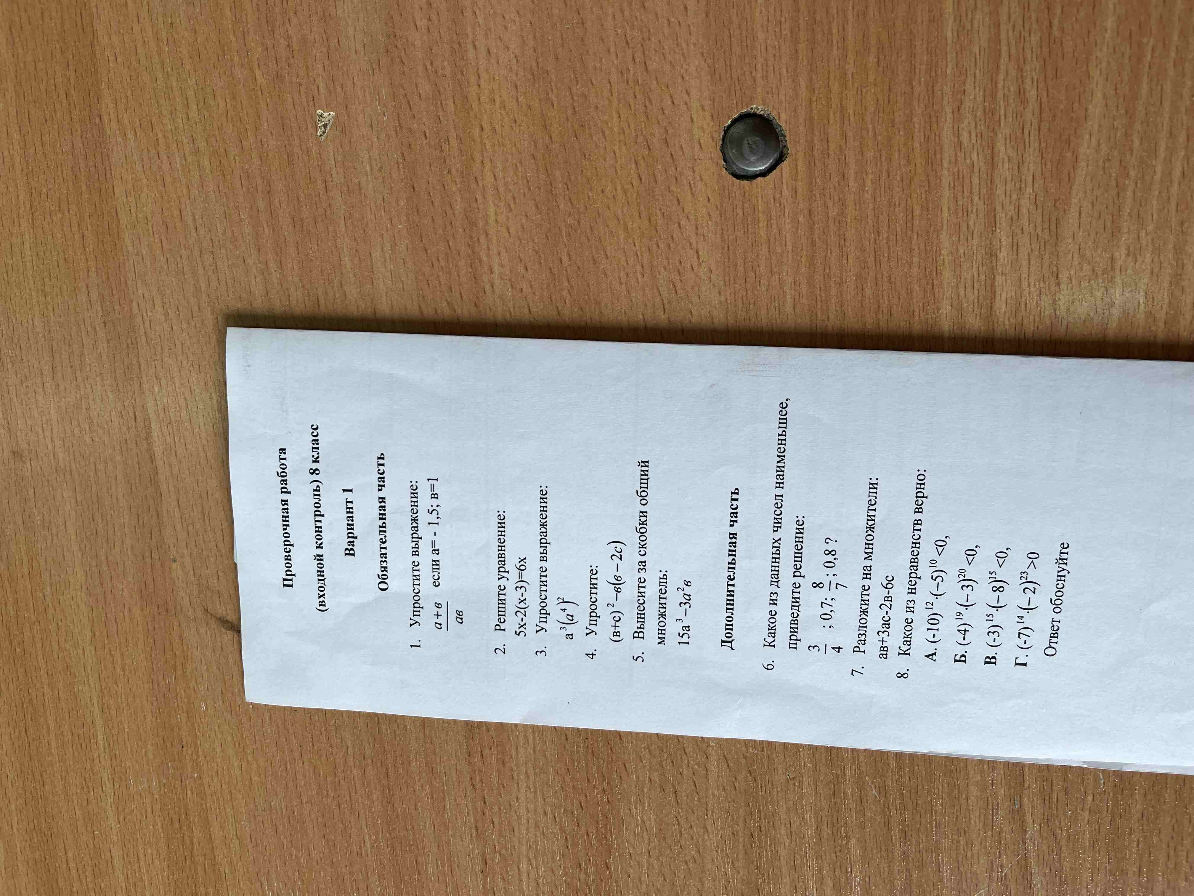 6. Какое из данных чисел наименьшее, приведите решение: $\frac{3}{4}; 0,7; \frac{8}{7}; 0,8$?