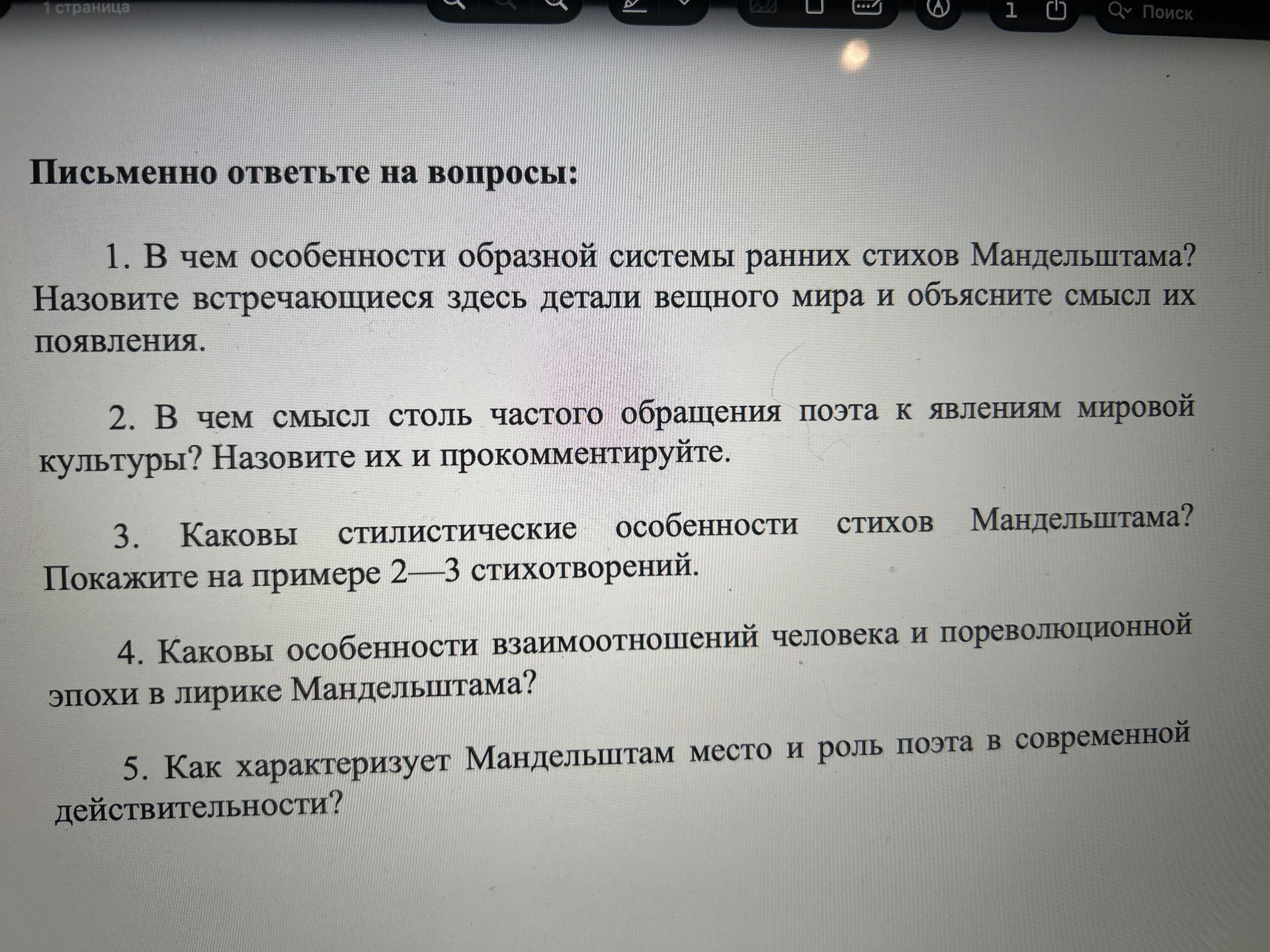 Ответ: Особенности образной системы Мандельштама в классичности, вещественности и культурных ассоциациях, а детали вещного мира несут символический смысл вечности, памяти и хрупкости.