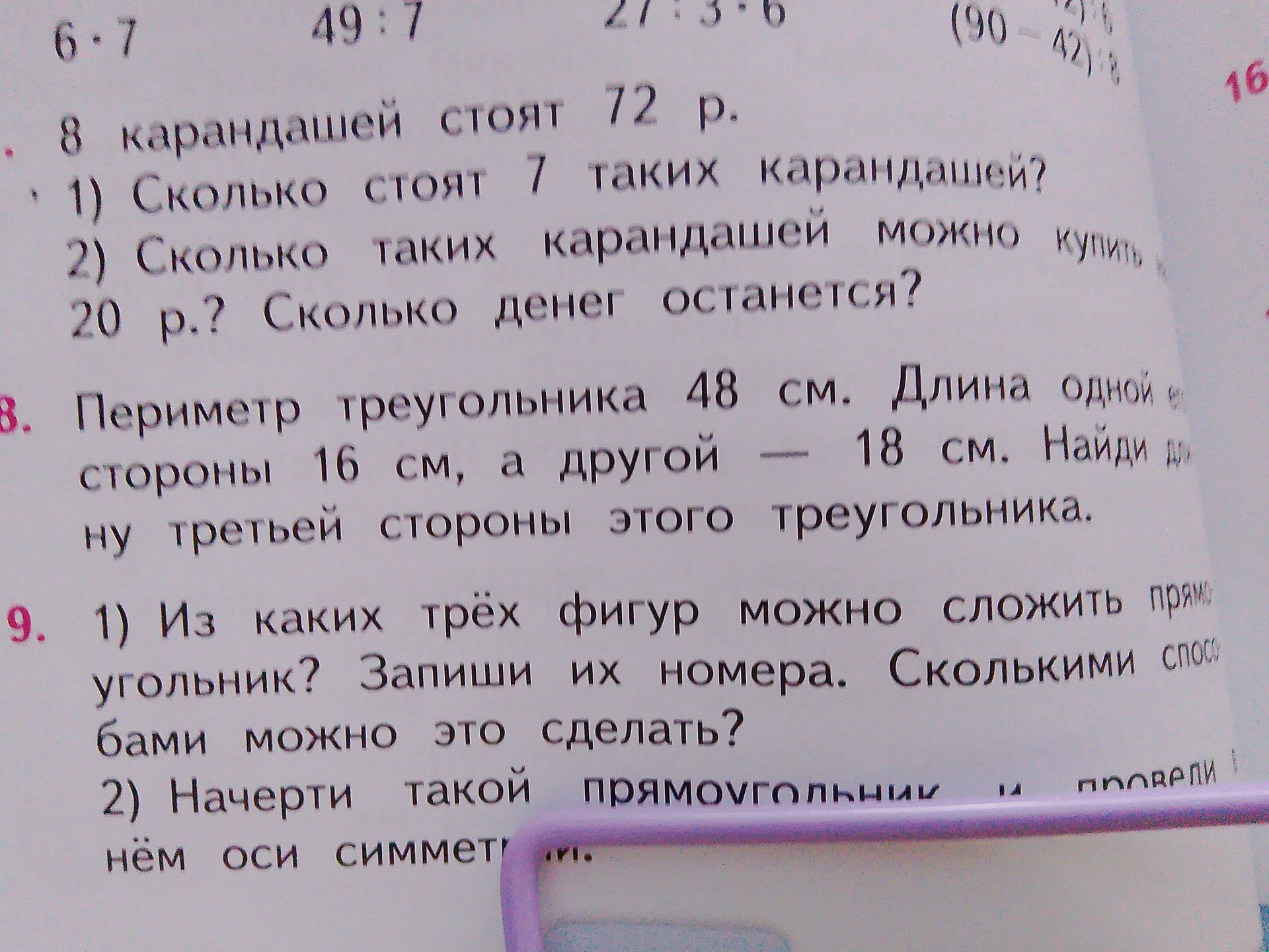 16 + 18 = 34 (см) - сумма двух известных сторон.