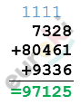 \[7328 + 80461 + 9336 = 97\ 125\]