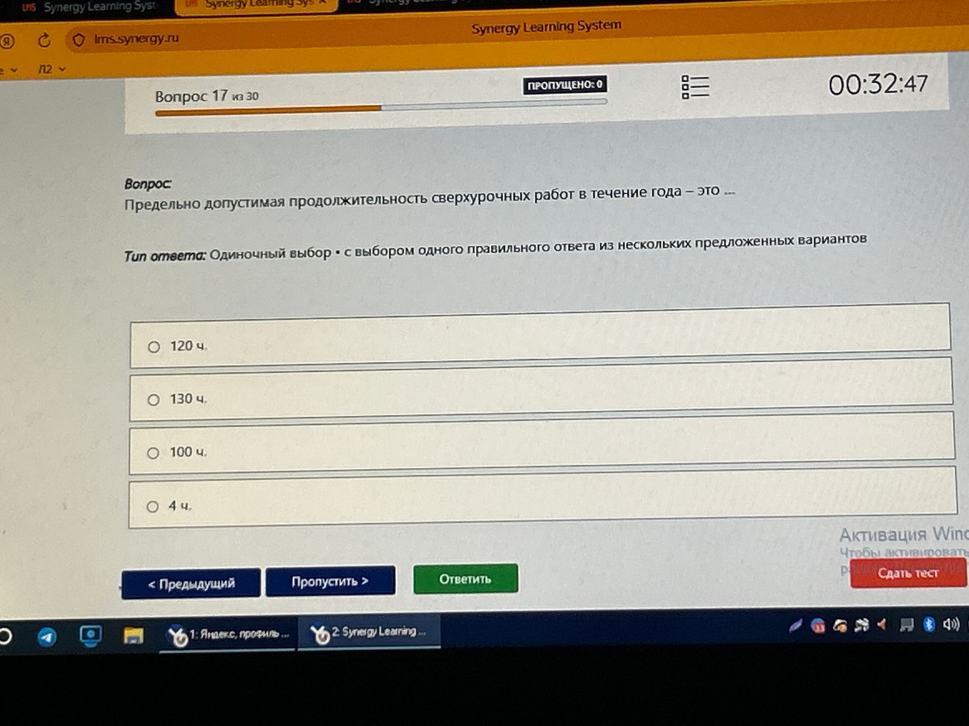 В соответствии с Трудовым кодексом Российской Федерации (ст. 99 ТК РФ), предельная продолжительность сверхурочных работ не должна превышать для каждого работника 4 часов в течение двух дней подряд и 120 часов в год.