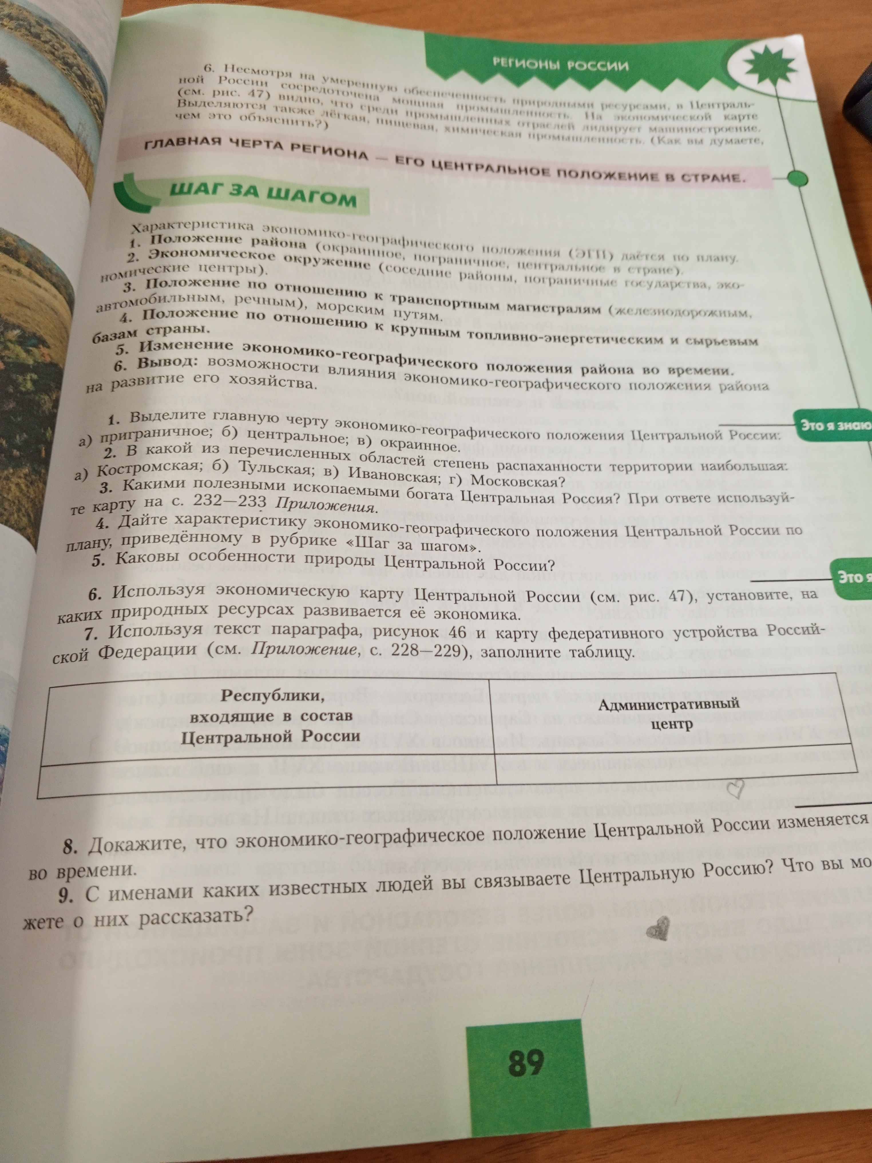 1. Выделите главную черту экономико-географического положения Центральной России: