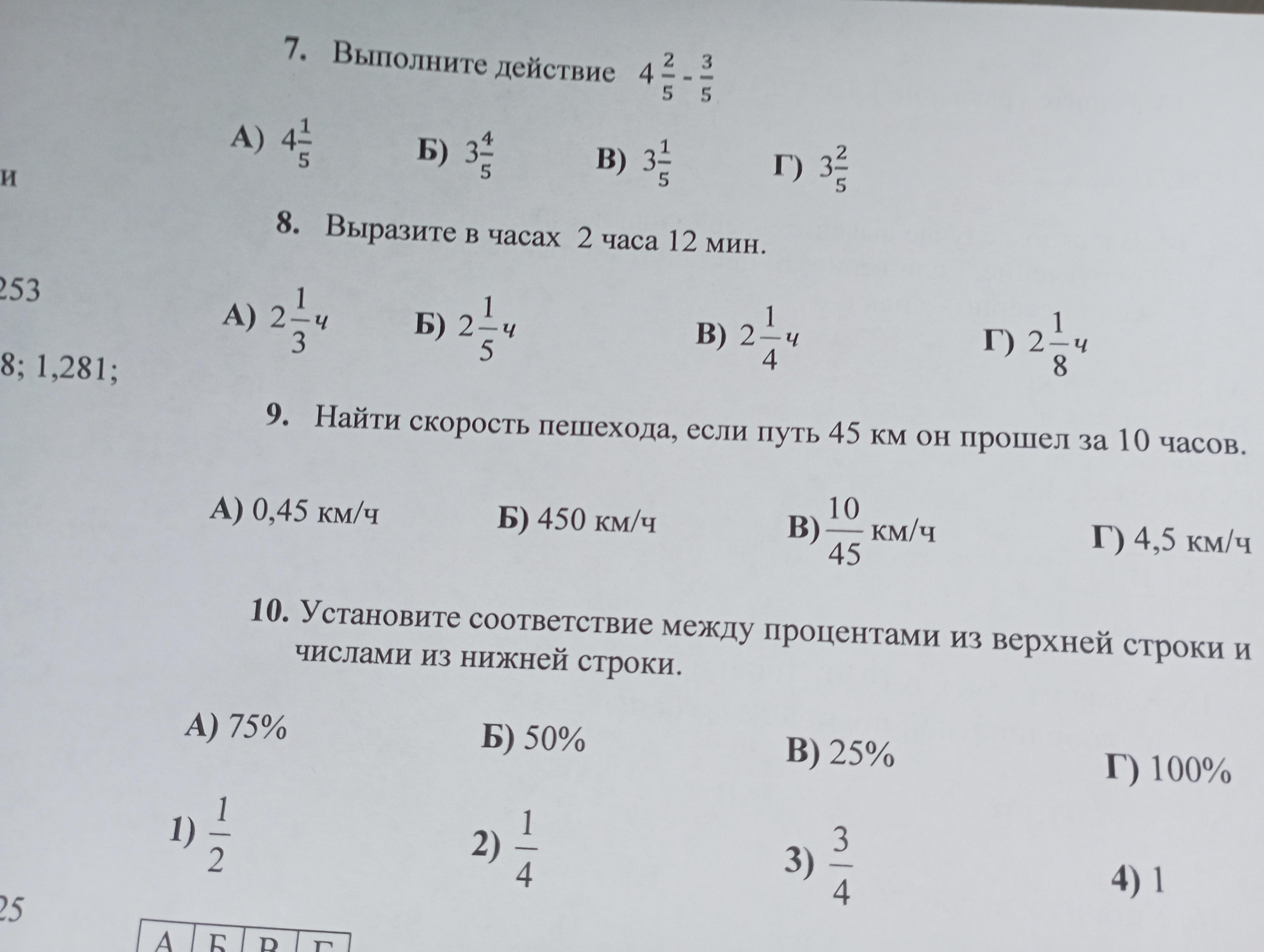 $$3\frac{7}{5} - \frac{3}{5} = 3\frac{7-3}{5} = 3\frac{4}{5}$$Ответ: Б) $$3\frac{4}{5}$$