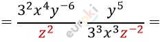 \[= \frac{3^{2}x^{4}y^{- 1}}{3^{3}x^{3}} = \frac{x}{3y}\]
