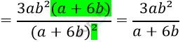 \[\frac{a + 6b}{6ab} \cdot \frac{18a^{2}b^{3}}{a^{2} + 12ab + 36b^{2}} =\]