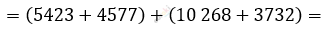 \[(5423 + 10\ 268) + (4577 + 3732) =\]