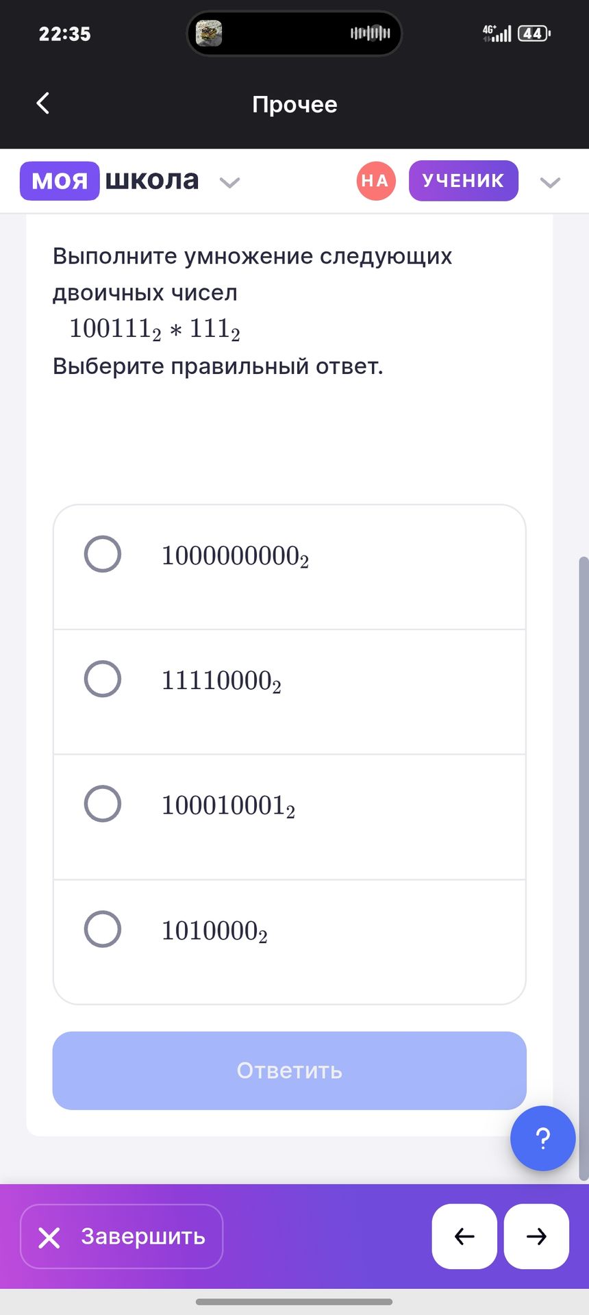 Для решения данного задания, необходимо выполнить умножение двоичных чисел.