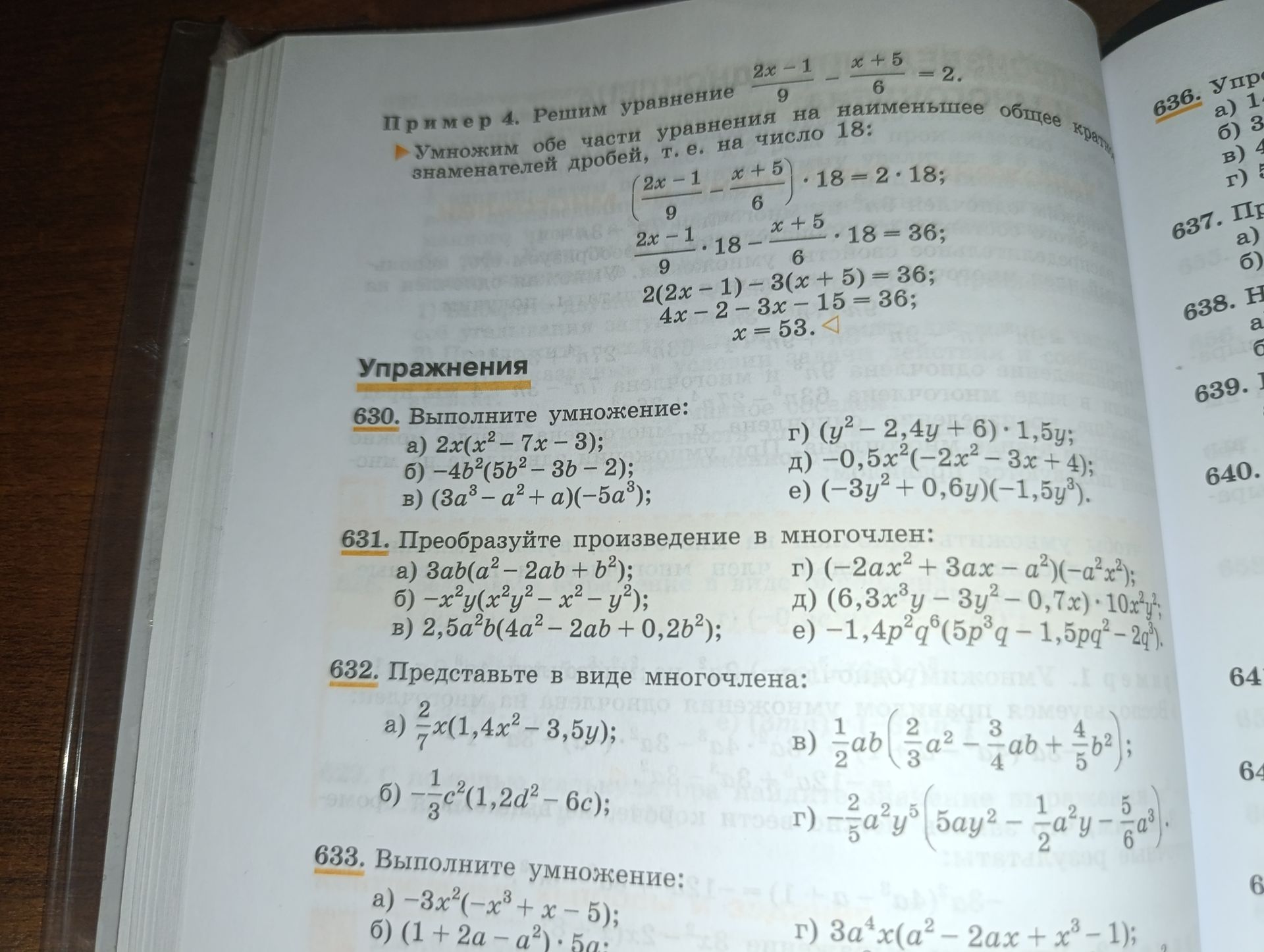 - г) $$(y^2 - 2,4y + 6) \cdot 1,5y = 1,5y^3 - 3,6y^2 + 9y$$