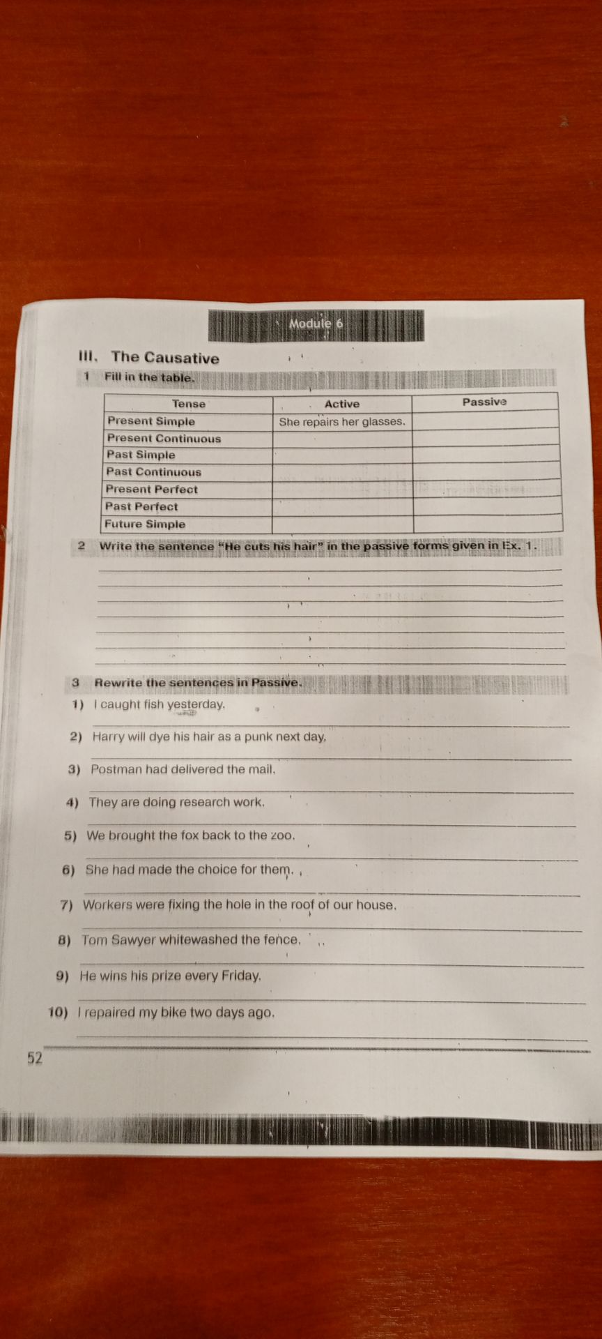 Past Simple: His hair was cut.